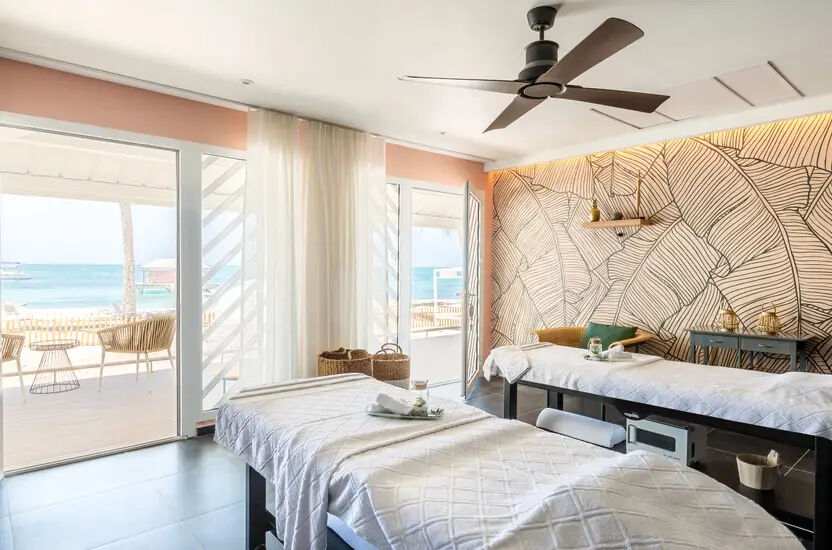 unvergessliche Behandlung mit Blick auf das smaragdgrüne Wasser des Ozeans.