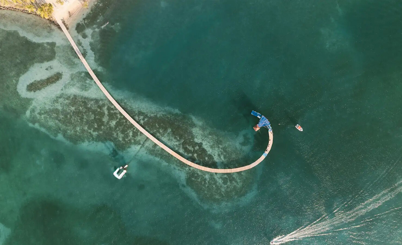 Direkt über dem türkisfarbenen Wasser fühlen Sie, wie sich Ihre Muskeln